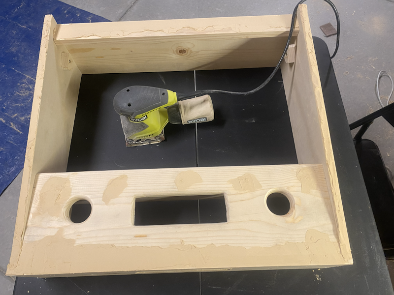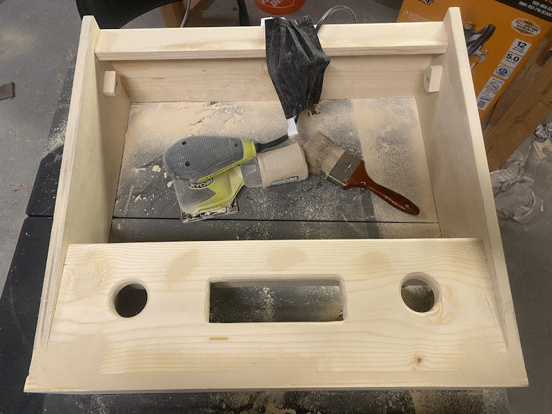 Now that the screen braces are done, I attached the bottom and prepped for painting by filling all the screw holes with wood filler. I let that dry overnight and then sanded the entire thing smooth.