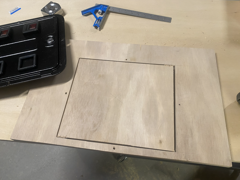 Starting out, I cutout a piece of plywood for the back and drilled a hole for the power cord.