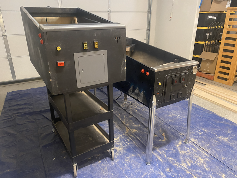 I am cannibalizing the old pinball machine for the new one. This is to save money on parts. I transferred the legs from the old cabinet to the new one.