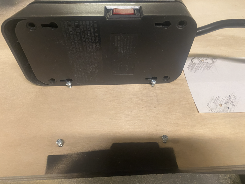 Next, I used paper to mark where the screws should be placed to hold the power strip in place: