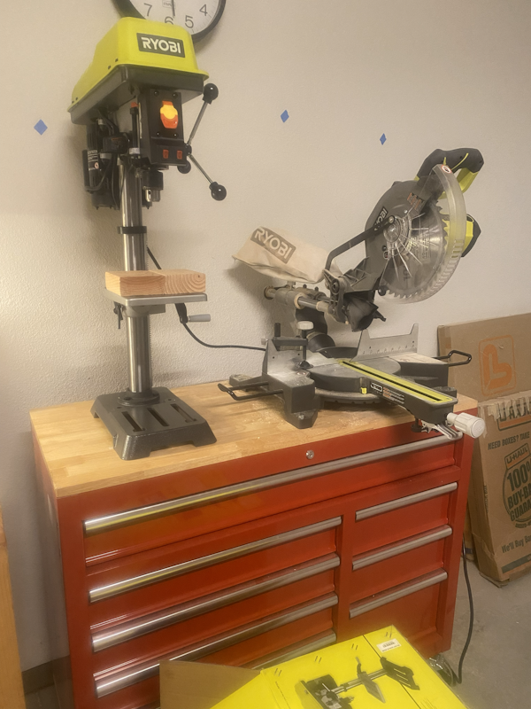 Ever since my house burned down, I've been replacing tools and setting up the garage. Knowing I would need one, I just went out and got a drill press and set it up: